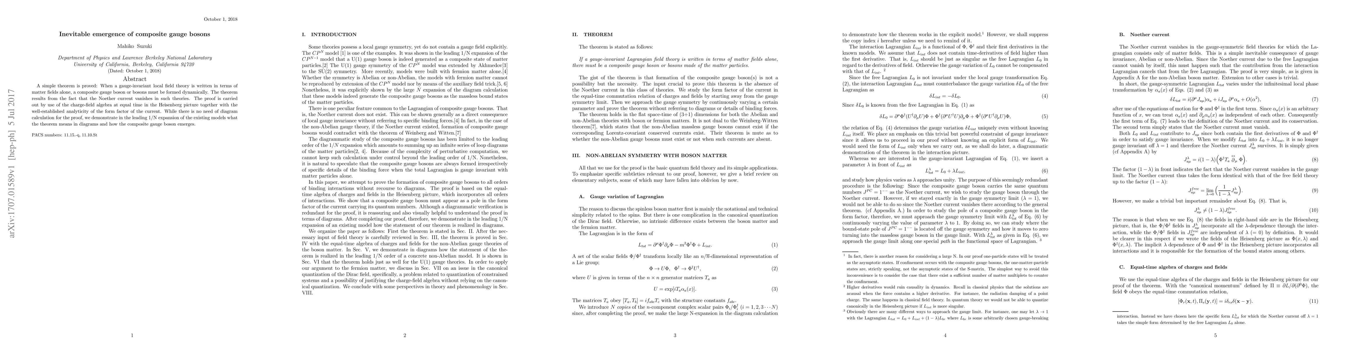 A theorem proves that composite gauge bosons emerge from certain local field theories when written in terms of matter fields alone. This phenomenon occurs due to the vanishing Noether current.