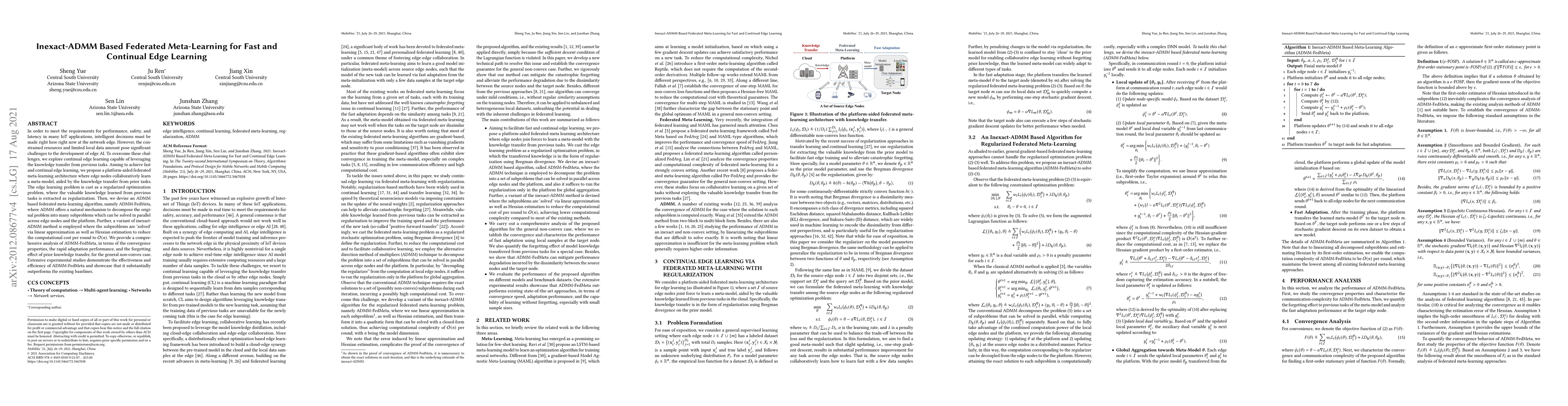 This paper proposes a federated meta-learning approach, ADMM-FedMeta, for fast and continual edge learning in IoT applications. It utilizes inexact-ADMM to decompose and solve optimization problems in parallel, significantly reducing computational costs and improving adaptation performance.