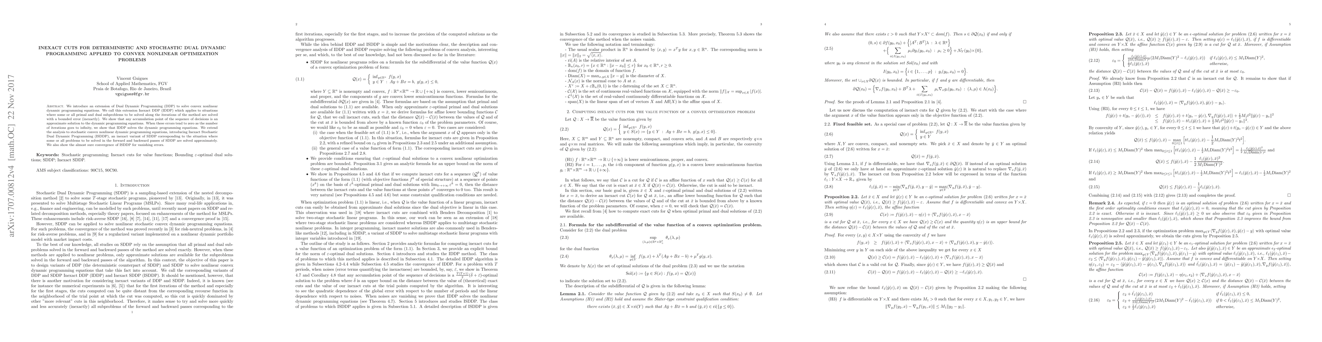 This paper extends Dual Dynamic Programming (DDP) to Inexact DDP (IDDP) for solving convex nonlinear optimization problems, allowing for bounded errors in subproblems. It also introduces Inexact Stochastic Dual Dynamic Programming (ISDDP) for stochastic problems, demonstrating convergence for vanishing errors.