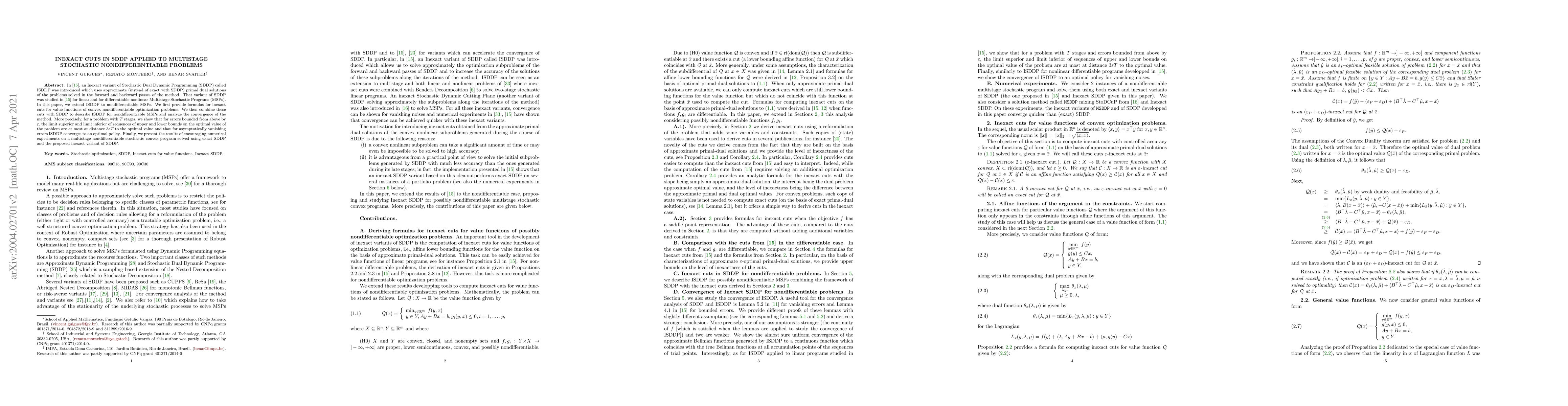 This paper extends the Inexact Stochastic Dual Dynamic Programming (ISDDP) method to handle nondifferentiable Multistage Stochastic Programs (MSPs). It introduces inexact cuts for value functions in nondifferentiable optimization and demonstrates ISDDP's convergence to an optimal policy for asymptotically small errors.