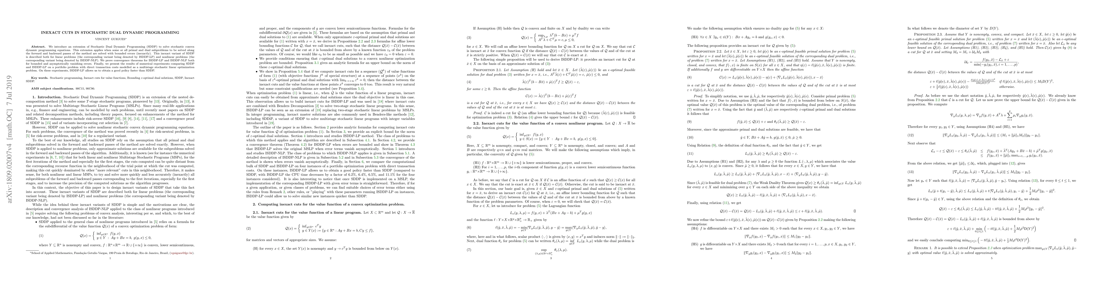 This paper extends Stochastic Dual Dynamic Programming (SDDP) to solve stochastic convex dynamic programming with inexact solutions, introducing ISDDP-LP and ISDDP-NLP. It proves convergence theorems for both variants under bounded and diminishing errors, and demonstrates through experiments that ISDDP-LP finds good policies faster than SDDP in portfolio problems with transaction costs.