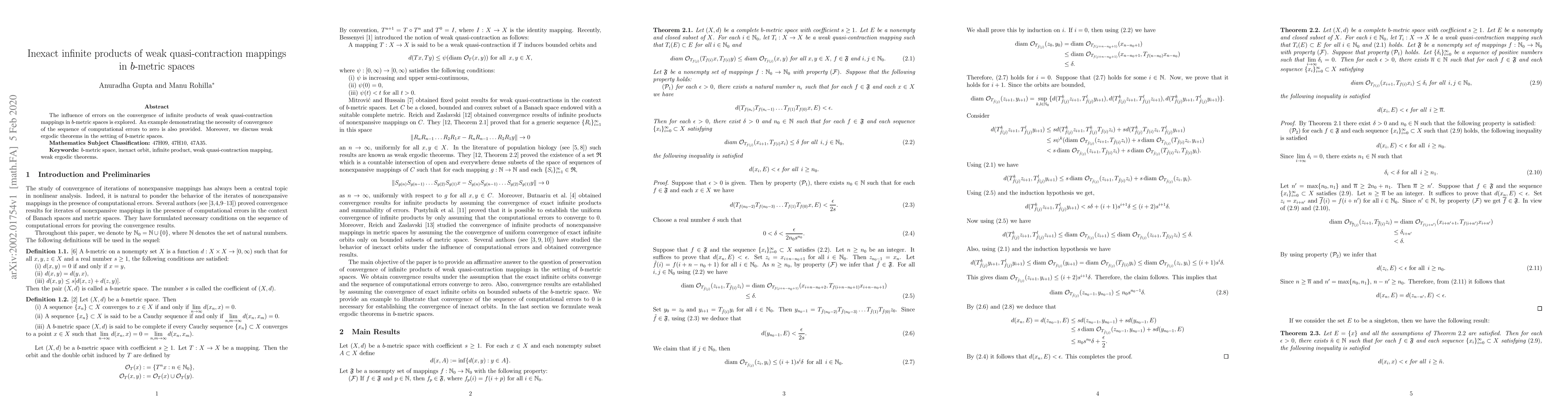 This paper investigates the convergence of infinite products of weak quasi-contraction mappings in $b$-metric spaces, highlighting the impact of computational errors. It provides an example showing that convergence of error sequences to zero is essential and discusses weak ergodic theorems within this context.