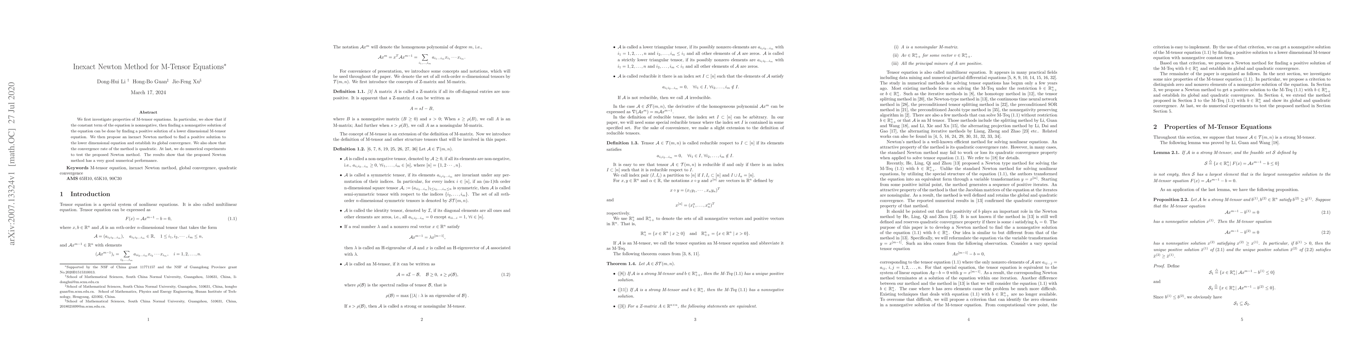 We first investigate properties of M-tensor equations. In particular, we show that if the constant term of the equation is nonnegative, then finding a nonnegative solution of the equation can be done by finding a positive solution of a lower dimensional M-tensor equation. We then propose an inexact Newton method to find a positive solution to the lower dimensional equation and establish its global convergence. We also show that the convergence rate of the method is quadratic. At last, we do numerical experiments to test the proposed Newton method. The results show that the proposed Newton method has a very good numerical performance.