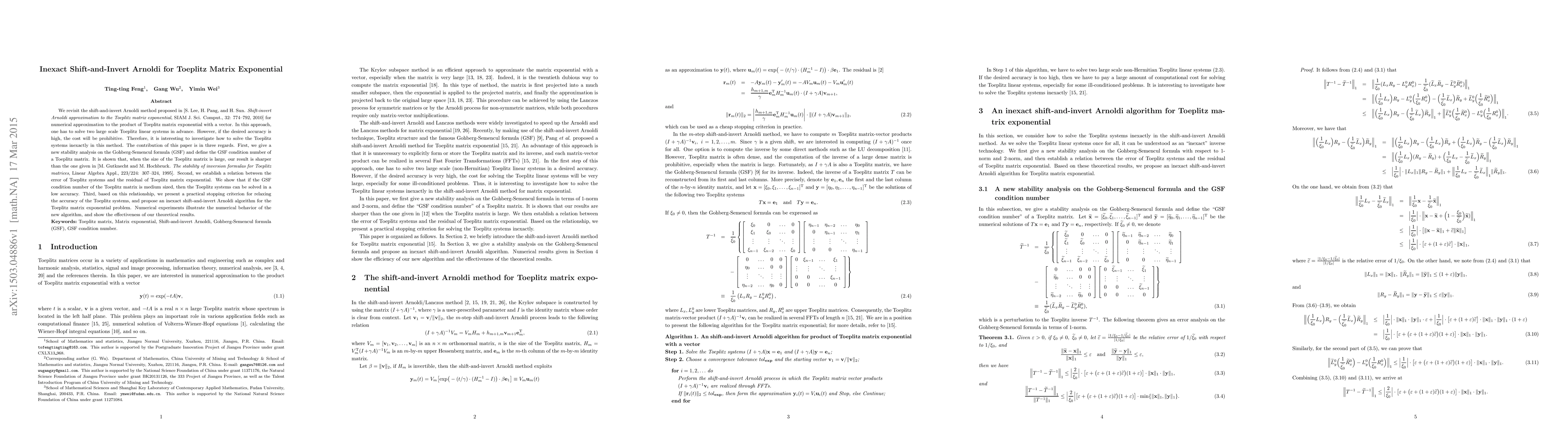 This paper proposes an inexact shift-and-invert Arnoldi method for approximating Toeplitz matrix exponentials, addressing the prohibitive cost of solving large Toeplitz linear systems. It introduces a new stability analysis of the Gohberg-Semencul formula, establishes a connection between Toeplitz system error and matrix exponential residual, and presents a practical stopping criterion for inexact solutions.