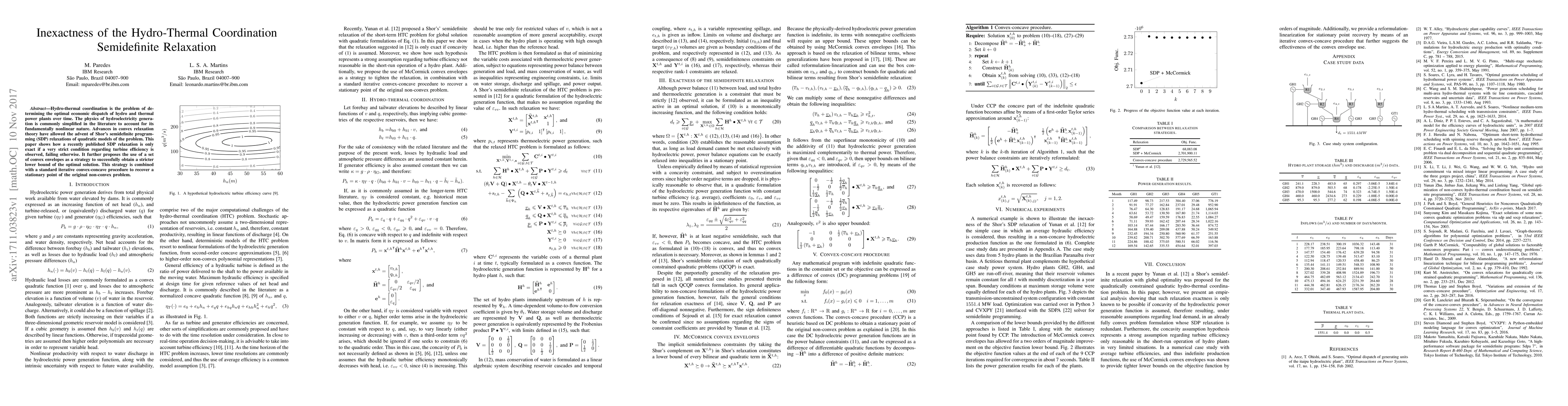 This paper examines the limitations of a semidefinite relaxation method for hydro-thermal coordination, revealing its inexactness unless strict turbine efficiency conditions are met. It proposes using convex envelopes to improve the lower bound and combines this with an iterative method to find a stationary point of the original problem.