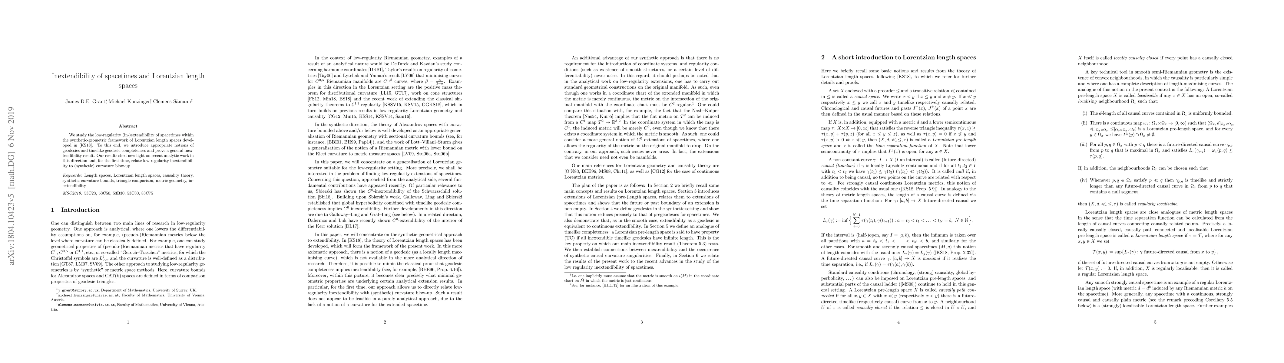 The research employs a synthetic-geometric framework of Lorentzian length spaces to study the low-regularity (in-)extendibility of spacetimes, introducing notions of geodesics and timelike geodesic completeness, and proving a general inextendibility result.