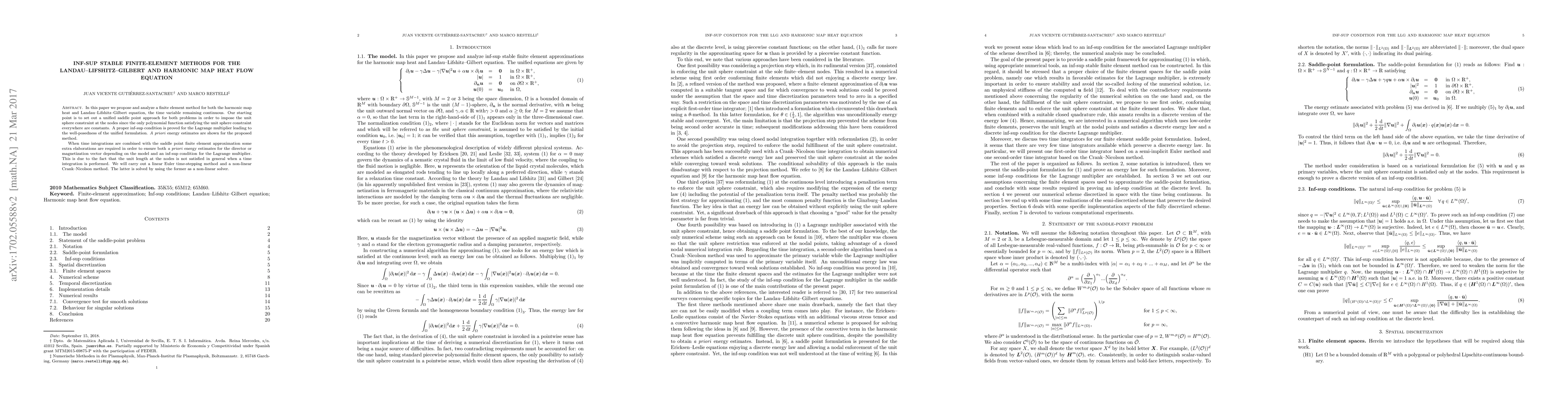 This paper presents a unified finite element method for the Landau--Lifshitz--Gilbert and harmonic map heat flow equations, ensuring well-posedness via an inf-sup condition. It addresses node constraint issues arising from time integration, demonstrating a priori energy estimates for both linear Euler and non-linear Crank--Nicolson methods.