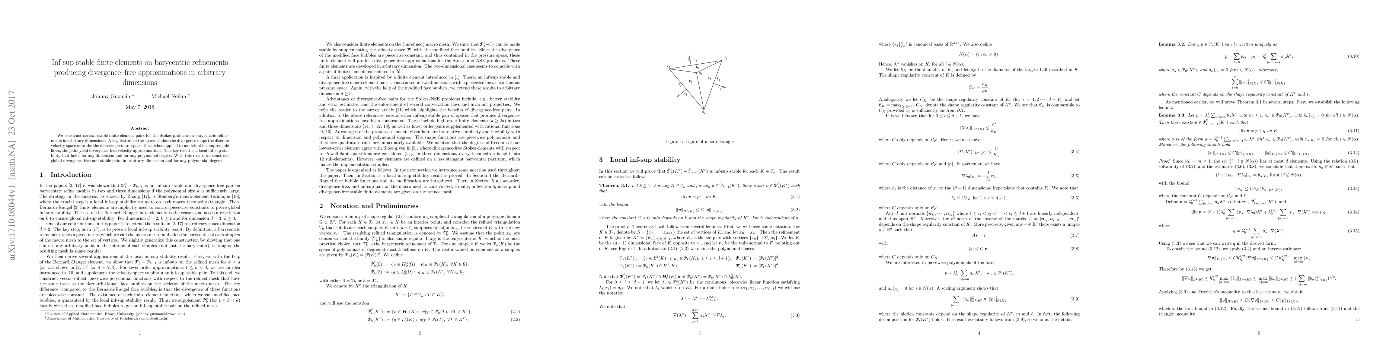 This paper constructs stable finite element pairs for the Stokes problem on barycentric refinements, ensuring divergence-free velocity approximations in incompressible flow models. The key result is a local inf-sup stability that holds universally across dimensions and polynomial degrees.