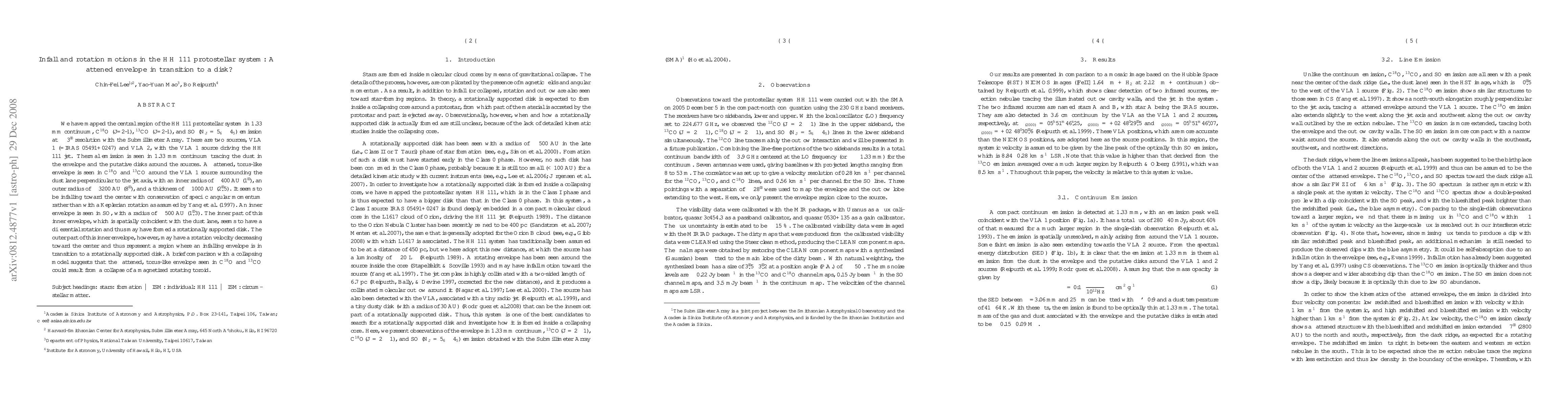This paper investigates the HH 111 protostellar system, revealing a flattened, torus-like envelope around VLA 1, suggesting infall motion with conserved angular momentum. An inner envelope in SO indicates a potential transition from infalling material to a rotationally supported disk.