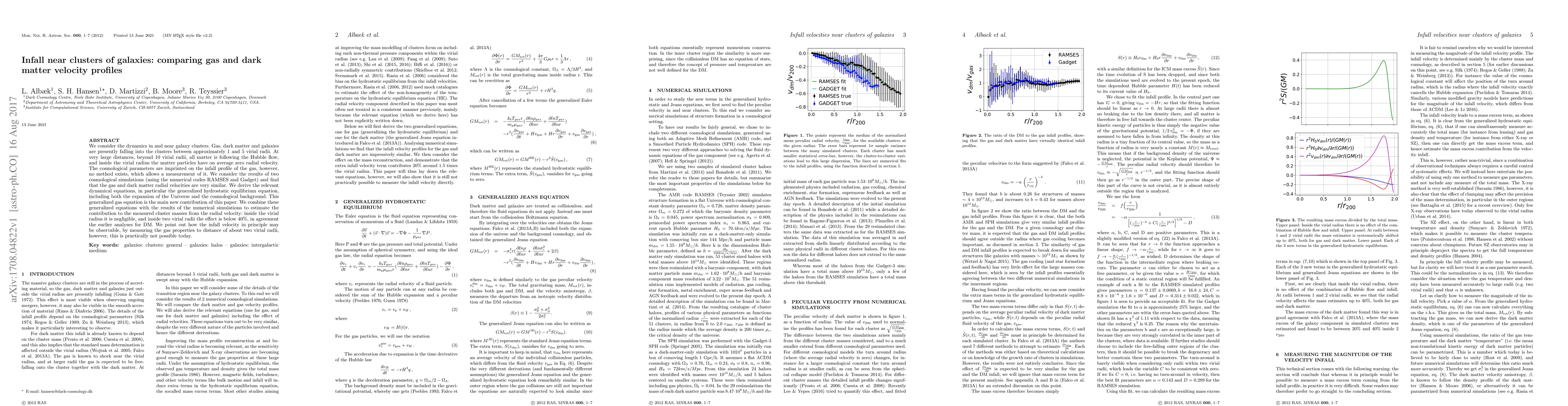 Researchers studied galaxy clusters and found that gas and dark matter have similar radial velocities near clusters, with effects on measured masses being less than 40% inside two virial radii.