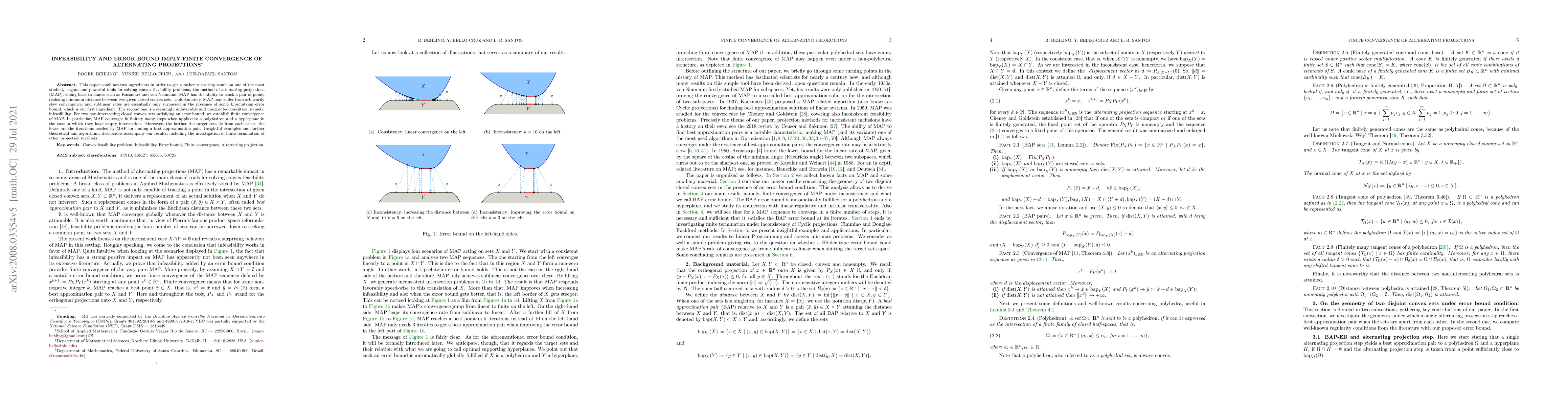 This paper demonstrates that the method of alternating projections (MAP) converges in a finite number of steps when applied to two non-intersecting closed convex sets that satisfy an error bound, highlighting the role of infeasibility in achieving this convergence. The results show that greater distance between the sets leads to quicker convergence.