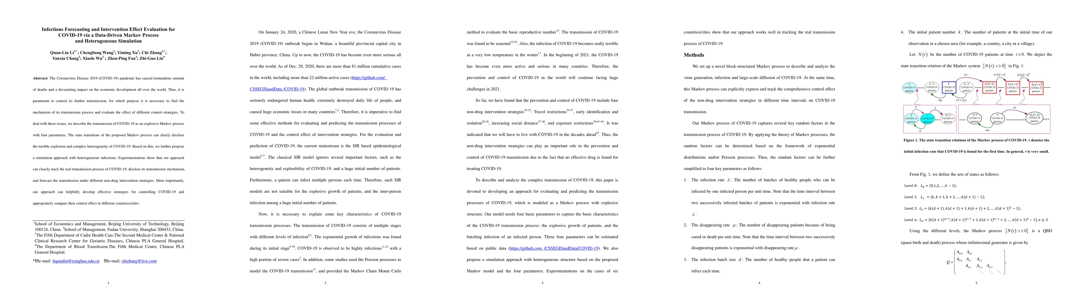 The Coronavirus Disease 2019 (COVID-19) pandemic has caused tremendous amount of deaths and a devastating impact on the economic development all over the world. Thus, it is paramount to control its further transmission, for which purpose it is necessary to find the mechanism of its transmission process and evaluate the effect of different control strategies. To deal with these issues, we describe the transmission of COVID-19 as an explosive Markov process with four parameters. The state transitions of the proposed Markov process can clearly disclose the terrible explosion and complex heterogeneity of COVID-19. Based on this, we further propose a simulation approach with heterogeneous infections. Experimentations show that our approach can closely track the real transmission process of COVID-19, disclose its transmission mechanism, and forecast the transmission under different non-drug intervention strategies. More importantly, our approach can helpfully develop effective strategies for controlling COVID-19 and appropriately compare their control effect in different countries/cities.