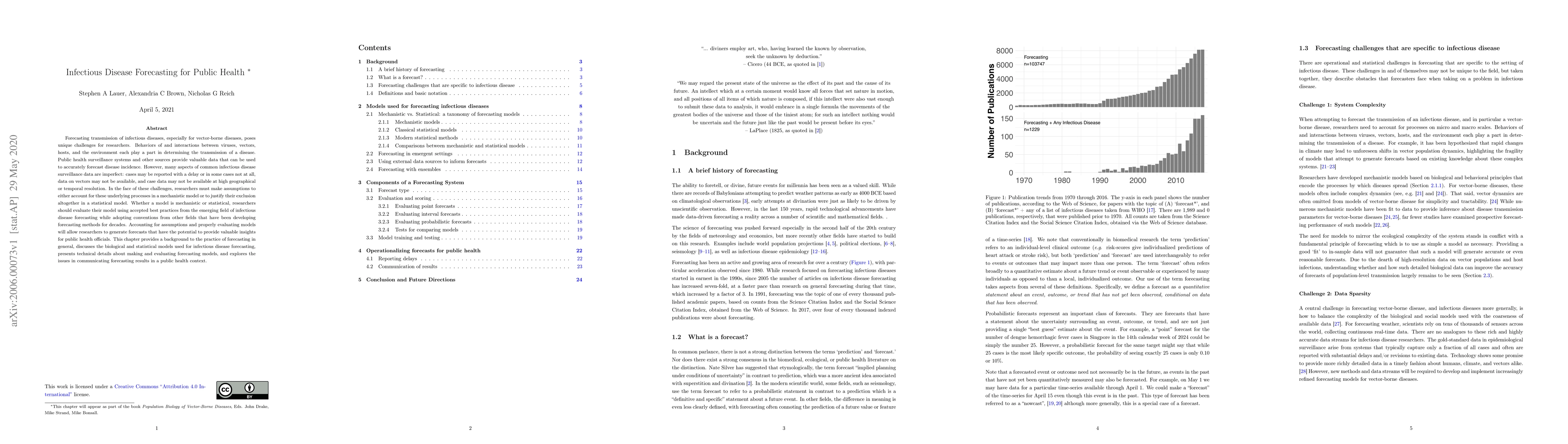 This paper discusses the complexities of forecasting infectious disease transmission, especially for vector-borne diseases, and emphasizes the importance of using both biological and statistical models to address data imperfections. It highlights the need for rigorous evaluation and communication of forecasting models to inform public health decisions.