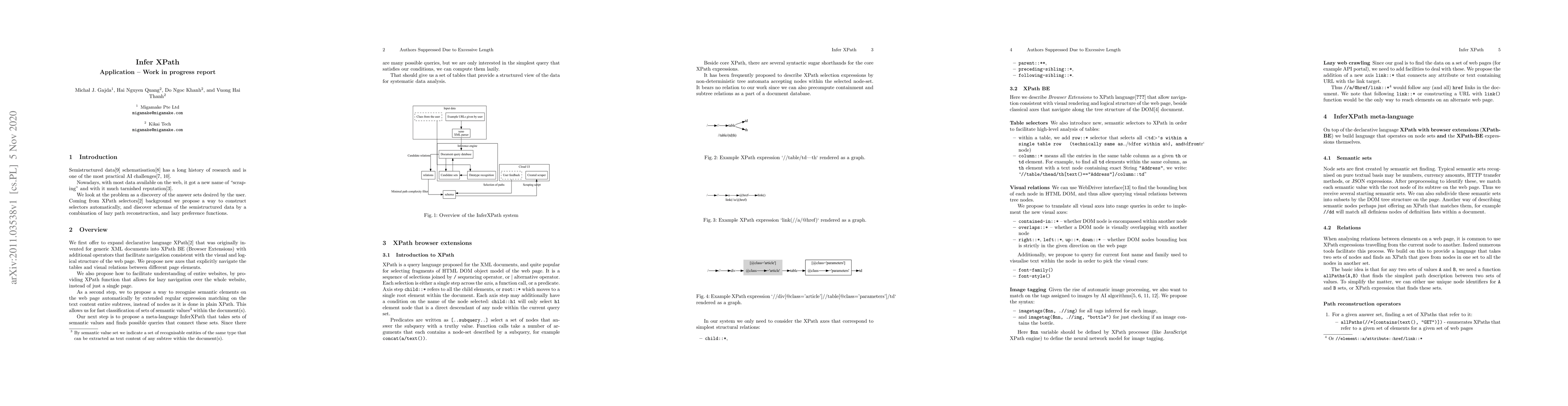 We propose reformulation of discovery of data structure within a web page as relations between sets of document nodes. We start by reformulating web page analysis as finding expressions in extension of XPath. Then we propose to automatically discover these XPath expressions with InferXPath meta-language. Our goal is to automate laborious process of conversion of manually created web pages that serve as software documentations, wikis, and reference documents, and speed up their conversion into tabular data that can be directly fed into data pipeline.