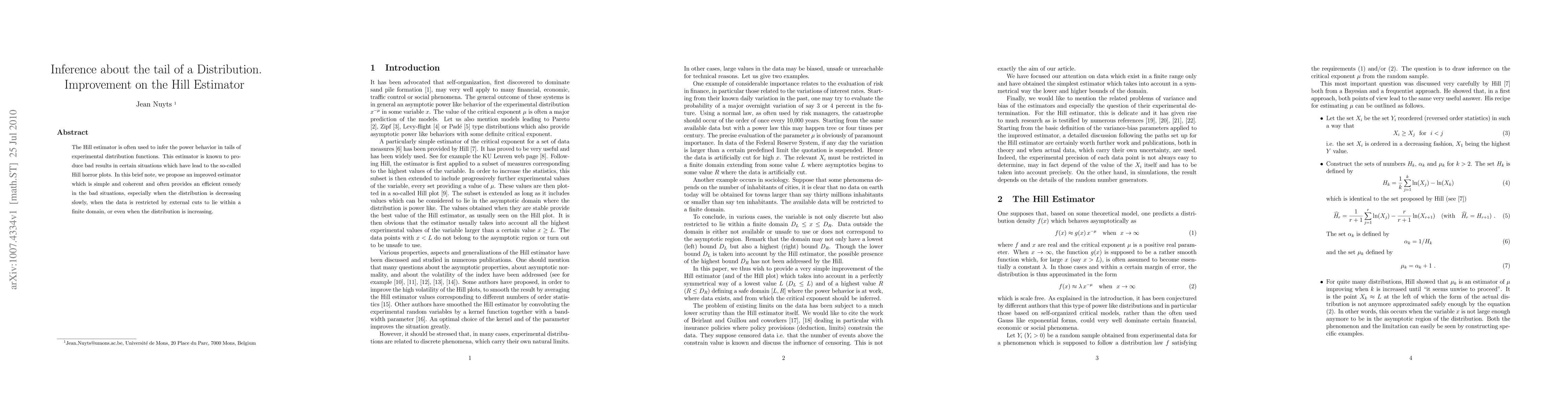 This paper proposes an improved estimator to better infer the tail behavior of distribution functions, addressing the shortcomings of the traditional Hill estimator, particularly in scenarios with slow decay, data constraints, or increasing distributions. The new estimator aims to provide more reliable results in these problematic situations.