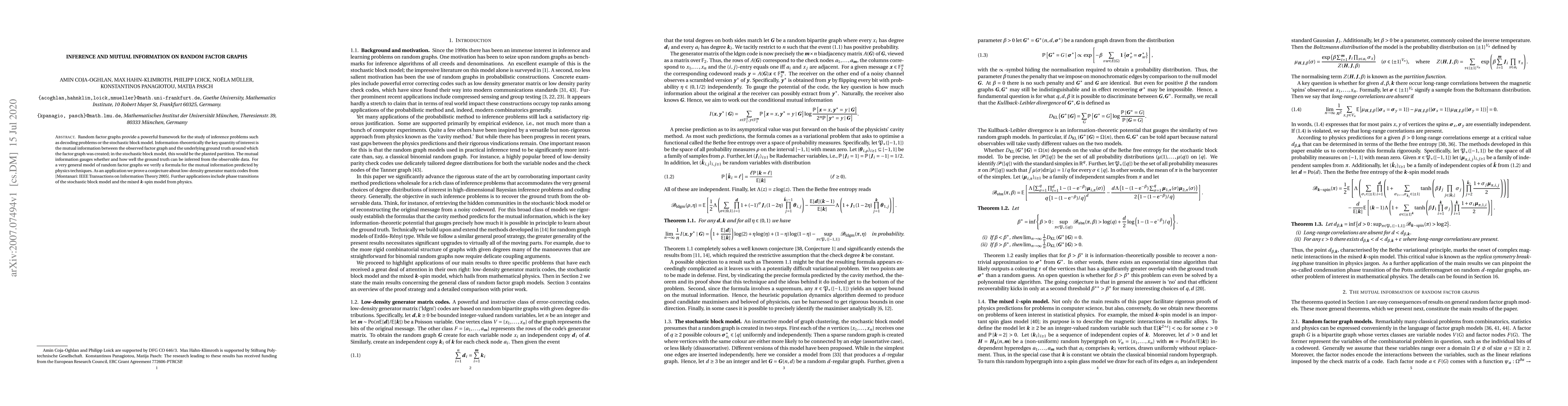 This paper investigates inference problems using random factor graphs, focusing on the mutual information between observable data and the underlying ground truth. It verifies a formula for mutual information predicted by physics techniques and applies this to prove a conjecture about low-density generator matrix codes, as well as to study phase transitions in the stochastic block model and the mixed $k$-spin model.