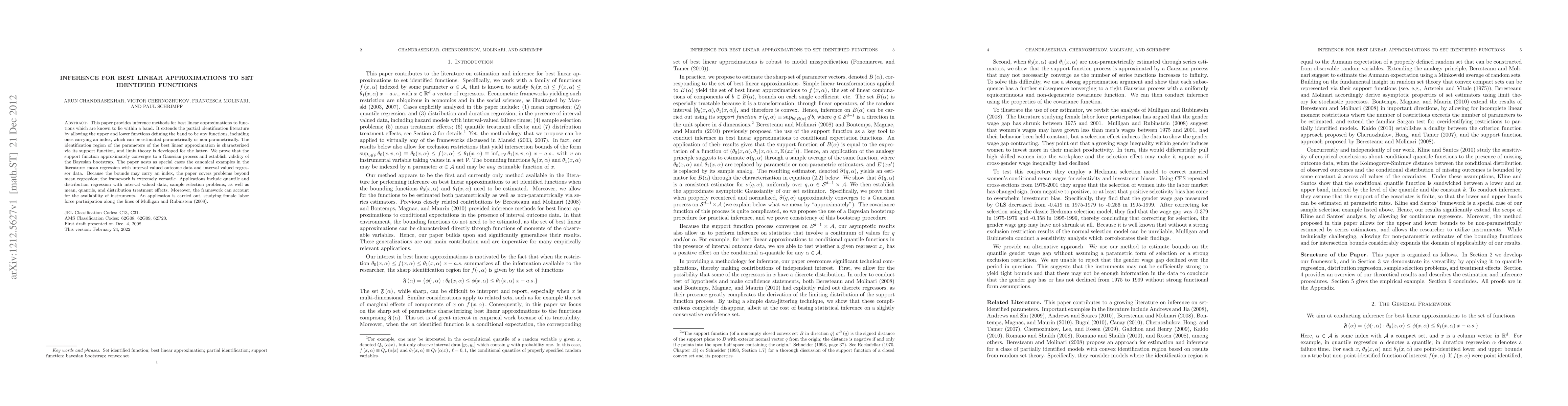 This paper provides inference methods for best linear approximations to functions which are known to lie within a band. It extends the partial identification literature by allowing the upper and lower functions defining the band to be any functions, including ones carrying an index, which can be estimated parametrically or non-parametrically. The identification region of the parameters of the best linear approximation is characterized via its support function, and limit theory is developed for the latter. We prove that the support function approximately converges to a Gaussian process and establish validity of the Bayesian bootstrap. The paper nests as special cases the canonical examples in the literature: mean regression with interval valued outcome data and interval valued regressor data. Because the bounds may carry an index, the paper covers problems beyond mean regression; the framework is extremely versatile. Applications include quantile and distribution regression with interval valued data, sample selection problems, as well as mean, quantile, and distribution treatment effects. Moreover, the framework can account for the availability of instruments. An application is carried out, studying female labor force participation along the lines of Mulligan and Rubinstein (2008).