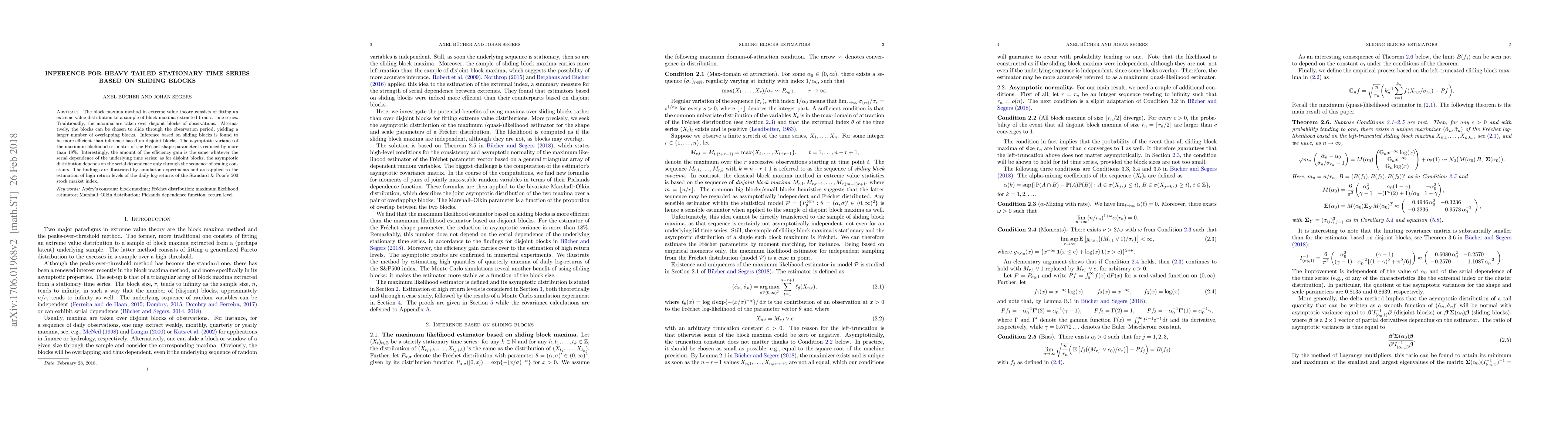 The paper finds that using sliding blocks instead of disjoint blocks in extreme value theory improves efficiency, with an 18% reduction in asymptotic variance. This method can accurately estimate high return levels for financial time series.