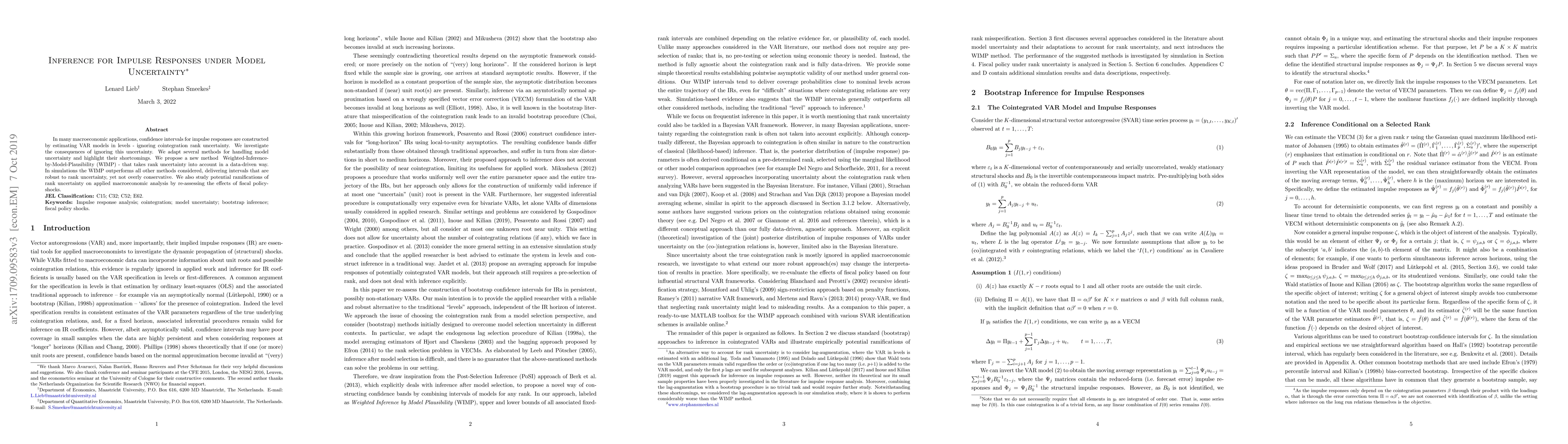 The paper proposes a new method, Weighted-Inference-by-Model-Plausibility (WIMP), for handling model uncertainty in constructing confidence intervals for impulse responses in VAR models, taking cointegration rank uncertainty into account in a data-driven way.