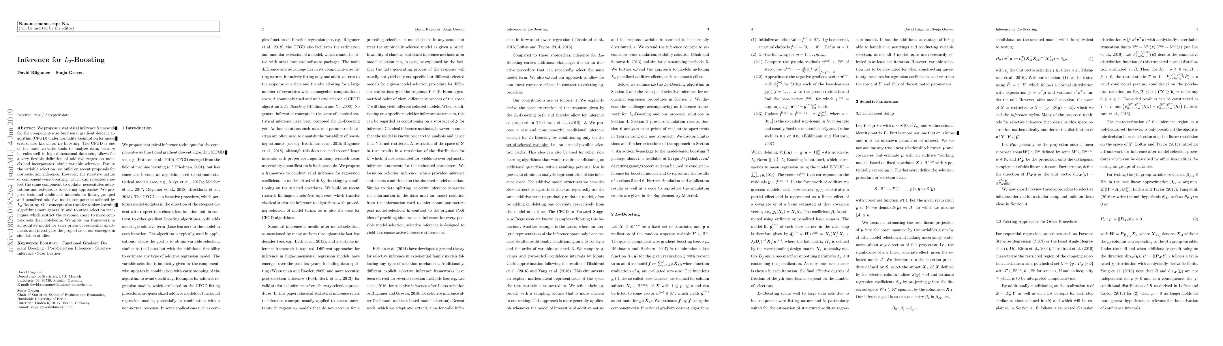 This paper introduces a statistical inference framework for $L_2$-Boosting, addressing the challenges of variable selection in the iterative process. It proposes tests and confidence intervals for selected model components, validated through simulations and an application to real-world residential apartment sales data.