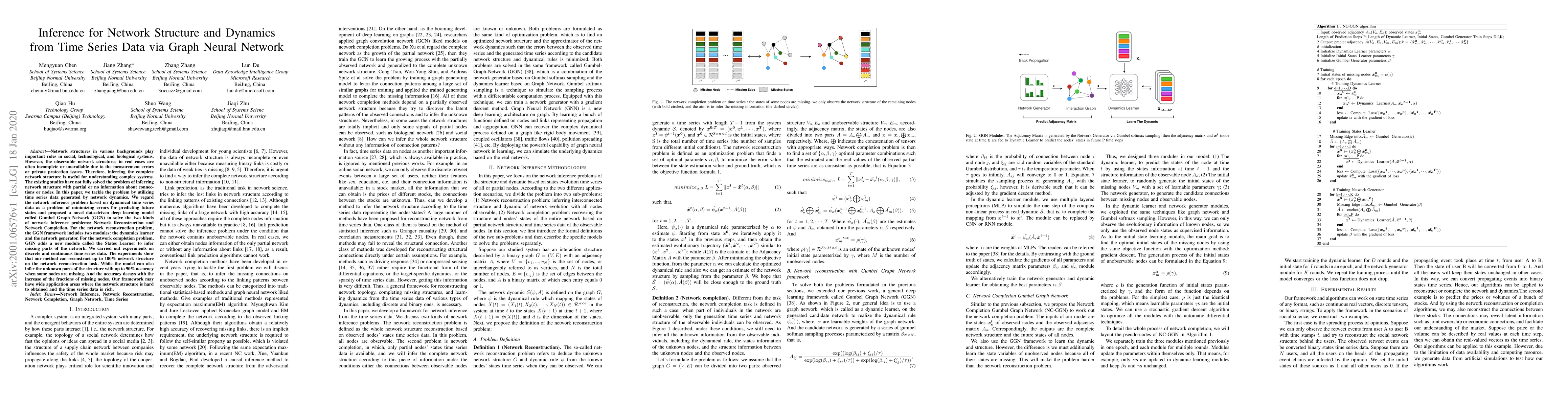 This paper introduces a novel Graph Neural Network, the Gumbel Graph Network (GGN), to infer complete network structures from incomplete time series data. The GGN model can effectively reconstruct and complete network structures with high accuracy, demonstrating up to 100% reconstruction and 90% completion under certain conditions.