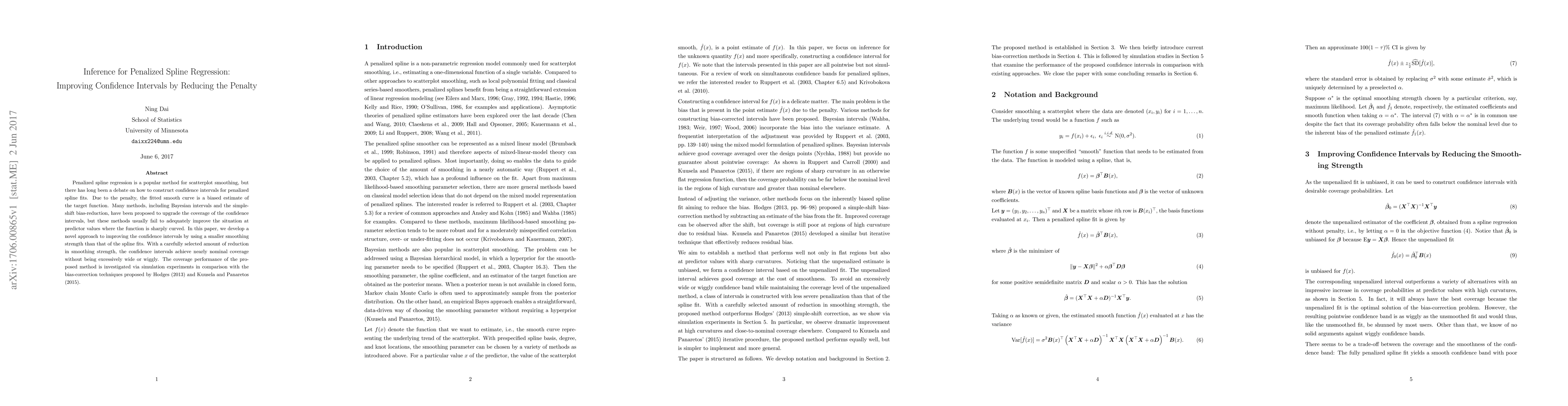 Penalized spline regression is a popular method for scatterplot smoothing, but there has long been a debate on how to construct confidence intervals for penalized spline fits. Due to the penalty, the fitted smooth curve is a biased estimate of the target function. Many methods, including Bayesian intervals and the simple-shift bias-reduction, have been proposed to upgrade the coverage of the confidence intervals, but these methods usually fail to adequately improve the situation at predictor values where the function is sharply curved. In this paper, we develop a novel approach to improving the confidence intervals by using a smaller smoothing strength than that of the spline fits. With a carefully selected amount of reduction in smoothing strength, the confidence intervals achieve nearly nominal coverage without being excessively wide or wiggly. The coverage performance of the proposed method is investigated via simulation experiments in comparison with the bias-correction techniques proposed by Hodges (2013) and Kuusela and Panaretos (2015).