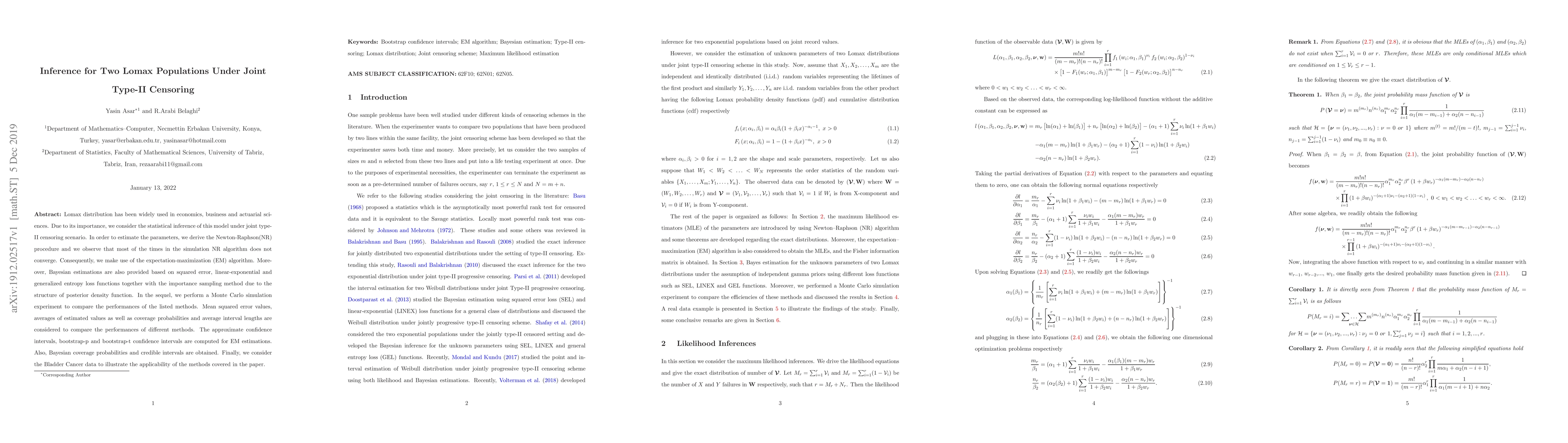 This paper investigates statistical inference for Lomax populations under joint type-II censoring using Newton-Raphson and expectation-maximization algorithms, comparing their performances through Monte Carlo simulations and real-world data analysis.