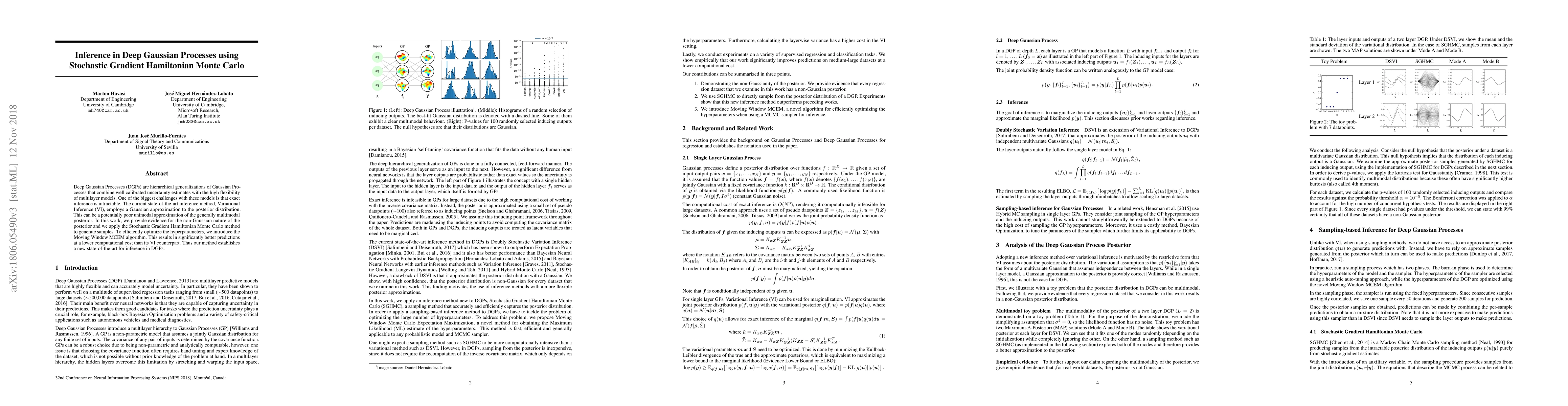 This paper introduces a new method for inference in Deep Gaussian Processes that outperforms current state-of-the-art methods with improved predictions at lower computational cost.