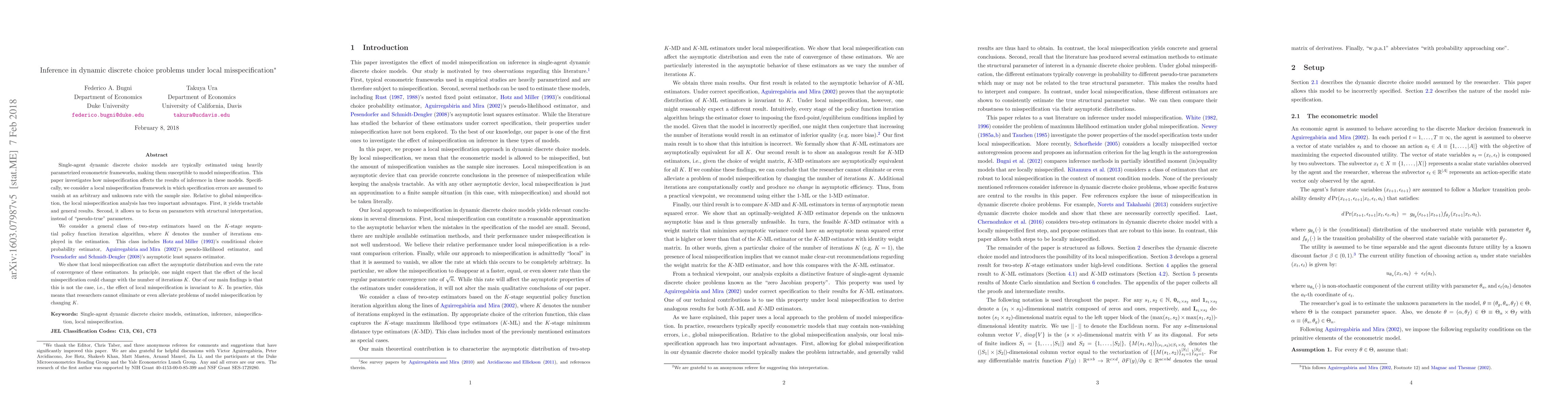 A study investigates how model misspecification affects single-agent dynamic discrete choice models, finding that local misspecification can impact estimator performance regardless of the number of iterations used.