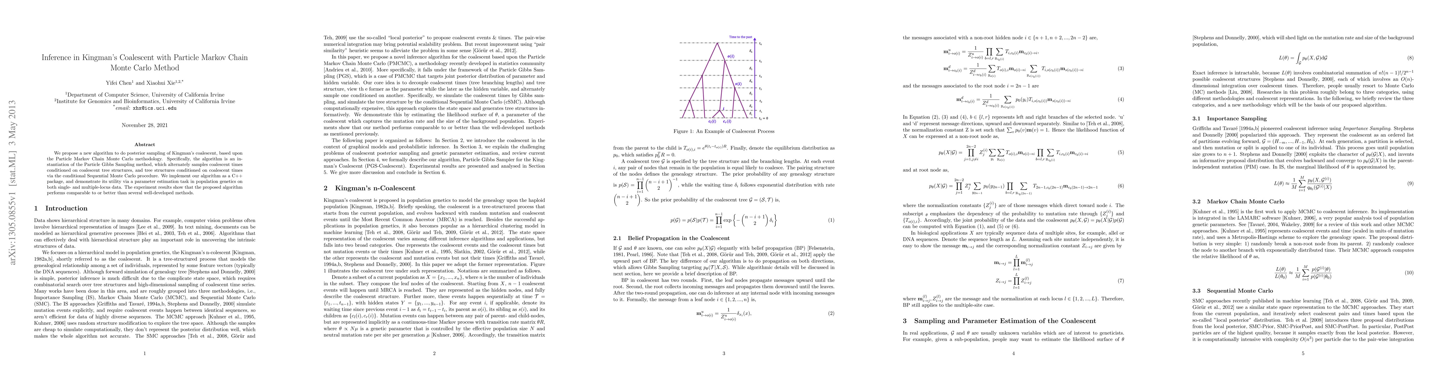 This paper introduces a Particle Markov Chain Monte Carlo algorithm for posterior sampling of Kingman's coalescent, implementing a Particle Gibbs Sampling method to alternately sample coalescent times and tree structures. The C++ package demonstrates competitive performance in parameter estimation tasks in population genetics.