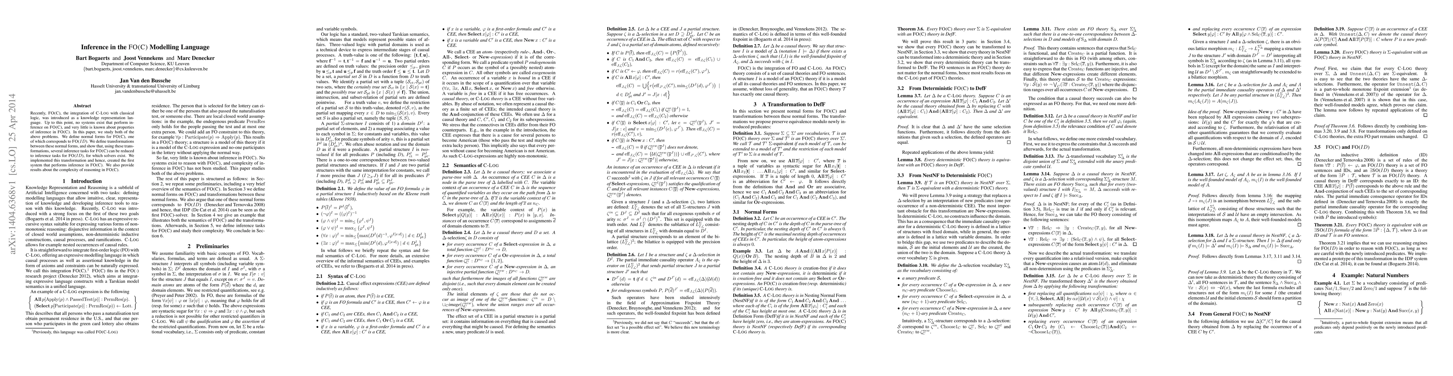 Recently, FO(C), the integration of C-Log with classical logic, was introduced as a knowledge representation language. Up to this point, no systems exist that perform inference on FO(C), and very little is known about properties of inference in FO(C). In this paper, we study both of the above problems. We define normal forms for FO(C), one of which corresponds to FO(ID). We define transformations between these normal forms, and show that, using these transformations, several inference tasks for FO(C) can be reduced to inference tasks for FO(ID), for which solvers exist. We implemented a prototype of this transformation, and thus present the first system to perform inference in FO(C). We also provide results about the complexity of reasoning in FO(C).