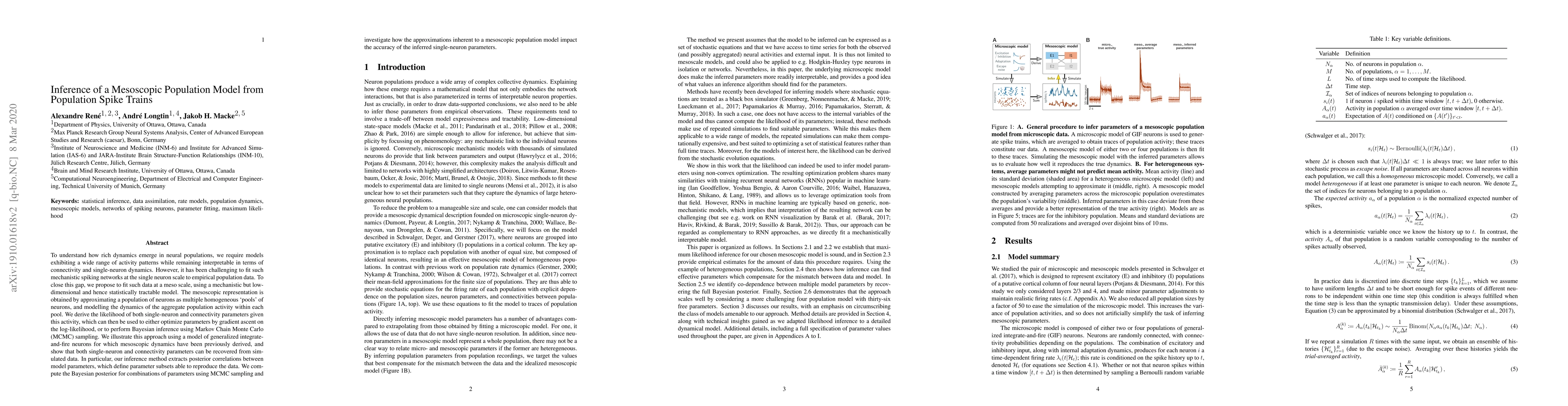 This research introduces a mesoscopic population model to bridge the gap between complex neural population dynamics and interpretable single-neuron parameters. By approximating a population of neurons into homogeneous 'pools', the study derives a tractable likelihood function for parameter estimation using gradient ascent or MCMC sampling. The method successfully recovers single-neuron and connectivity parameters from simulated data, revealing posterior correlations and assessing the impact of mesoscopic approximations on inferred parameter accuracy.