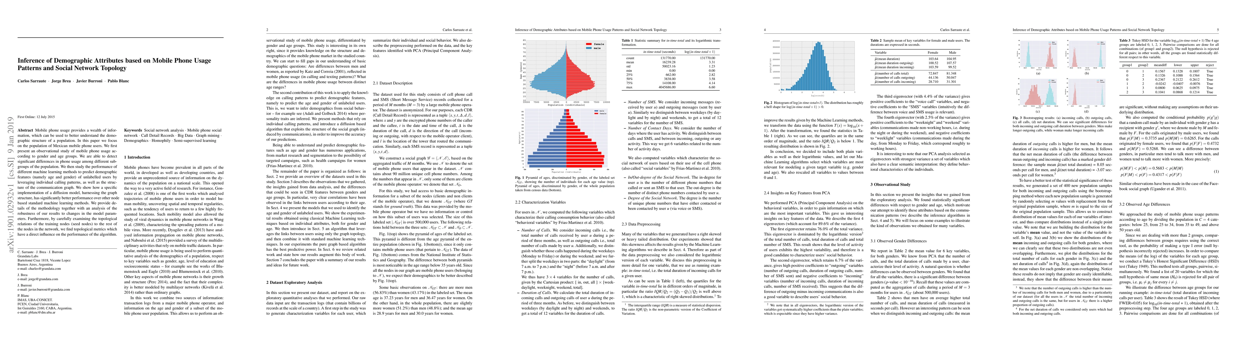 This paper investigates the demographic inference of Mexican mobile phone users based on their usage patterns and social network topology. It demonstrates significant differences in phone usage across gender and age groups, and shows that a diffusion model leveraging network structure outperforms standard machine learning methods in predicting demographic features.