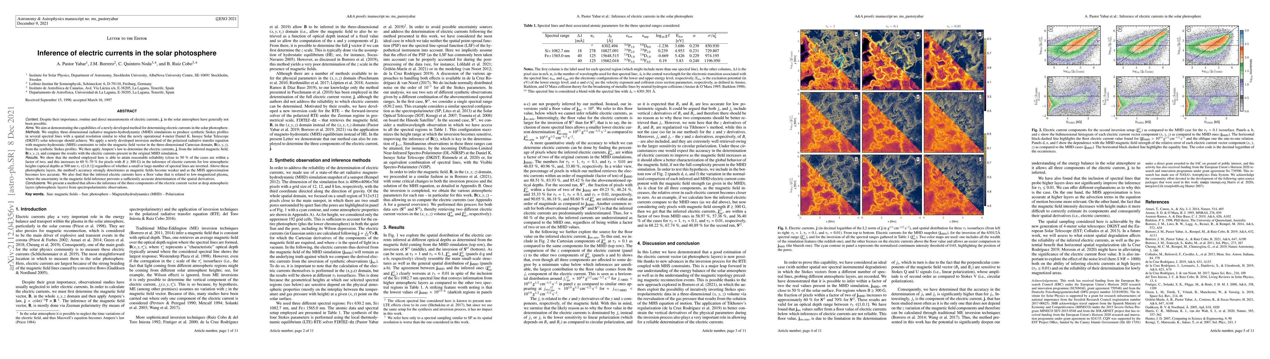 This paper introduces a new method for inferring electric currents in the solar photosphere using three-dimensional radiative magneto-hydrodynamic simulations and synthetic Stokes profiles. The method shows reasonable reliability in inferring electric currents at deep atmospheric layers, with accuracy improving for stronger magnetic fields.
