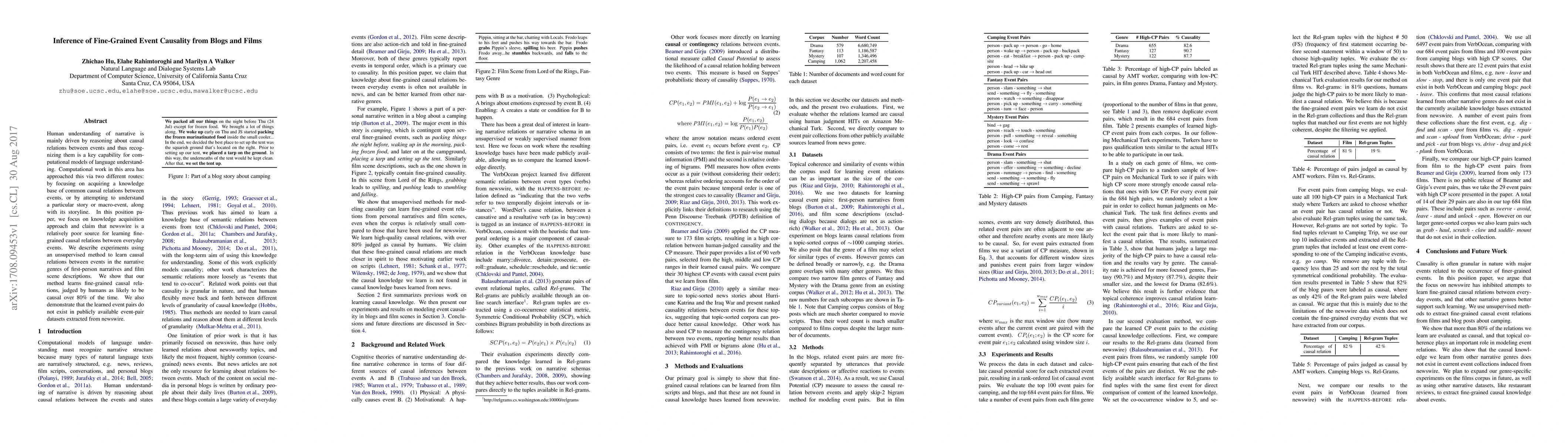 Human understanding of narrative is mainly driven by reasoning about causal relations between events and thus recognizing them is a key capability for computational models of language understanding. Computational work in this area has approached this via two different routes: by focusing on acquiring a knowledge base of common causal relations between events, or by attempting to understand a particular story or macro-event, along with its storyline. In this position paper, we focus on knowledge acquisition approach and claim that newswire is a relatively poor source for learning fine-grained causal relations between everyday events. We describe experiments using an unsupervised method to learn causal relations between events in the narrative genres of first-person narratives and film scene descriptions. We show that our method learns fine-grained causal relations, judged by humans as likely to be causal over 80% of the time. We also demonstrate that the learned event pairs do not exist in publicly available event-pair datasets extracted from newswire.
