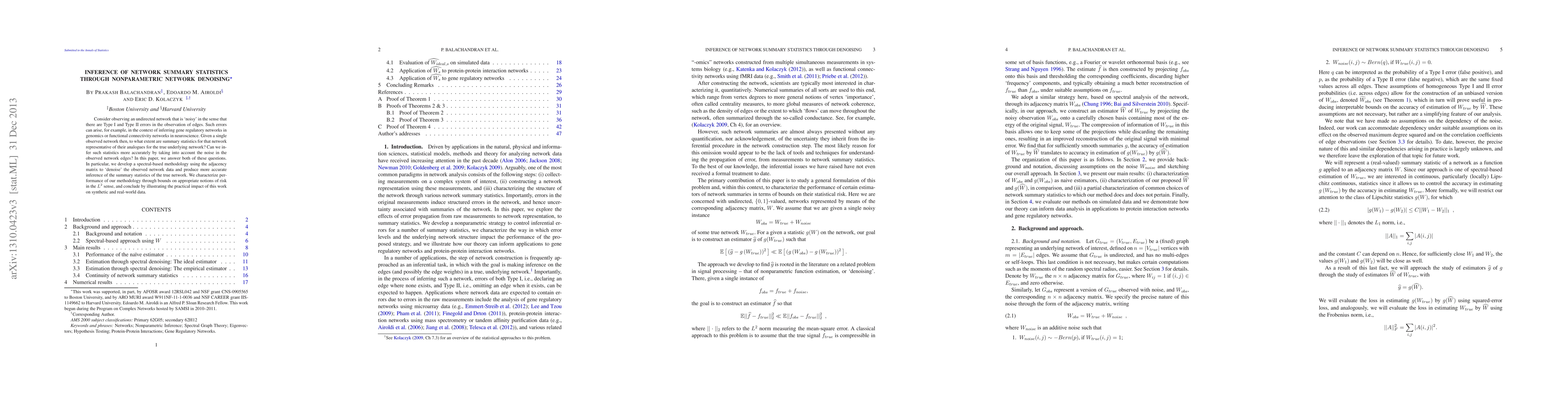 This paper develops a spectral-based methodology to refine network summary statistics from noisy observations, improving accuracy in understanding underlying networks.