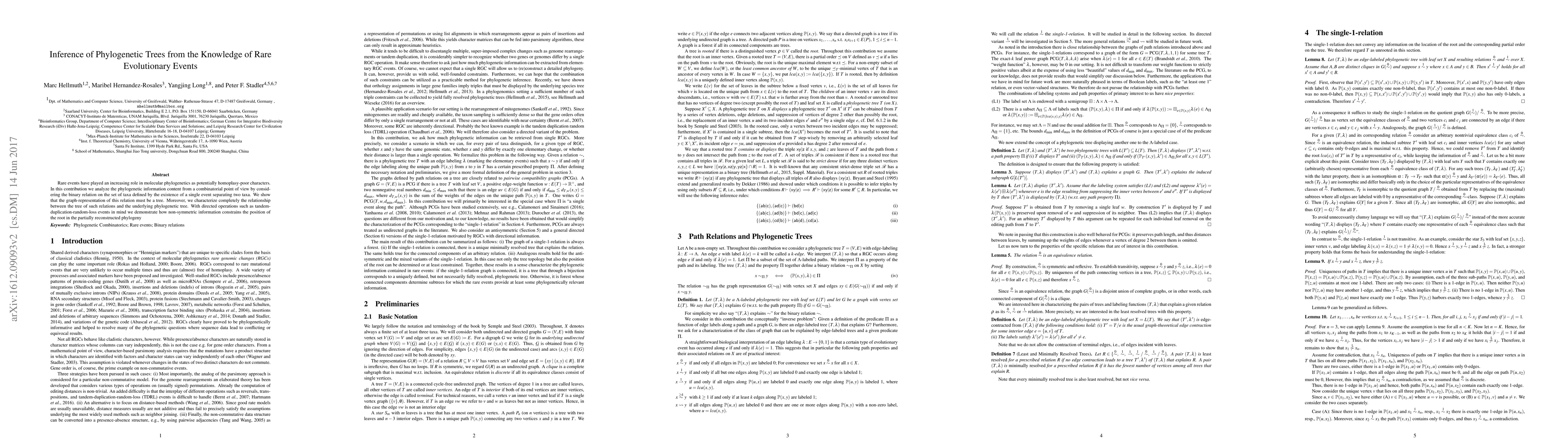 Rare events have played an increasing role in molecular phylogenetics as potentially homoplasy-poor characters.In this contribution we analyze the phylogenetic information content from a combinatorial point of view by consid-ering the binary relation on the set of taxa defined by the existence of a single event separating two taxa. We showthat the graph-representation of this relation must be a tree. Moreover, we characterize completely the relationshipbetween the tree of such relations and the underlying phylogenetic tree. With directed operations such as tandem-duplication-random-loss events in mind we demonstrate how non-symmetric information constrains the position ofthe root in the partially reconstructed phylogeny.