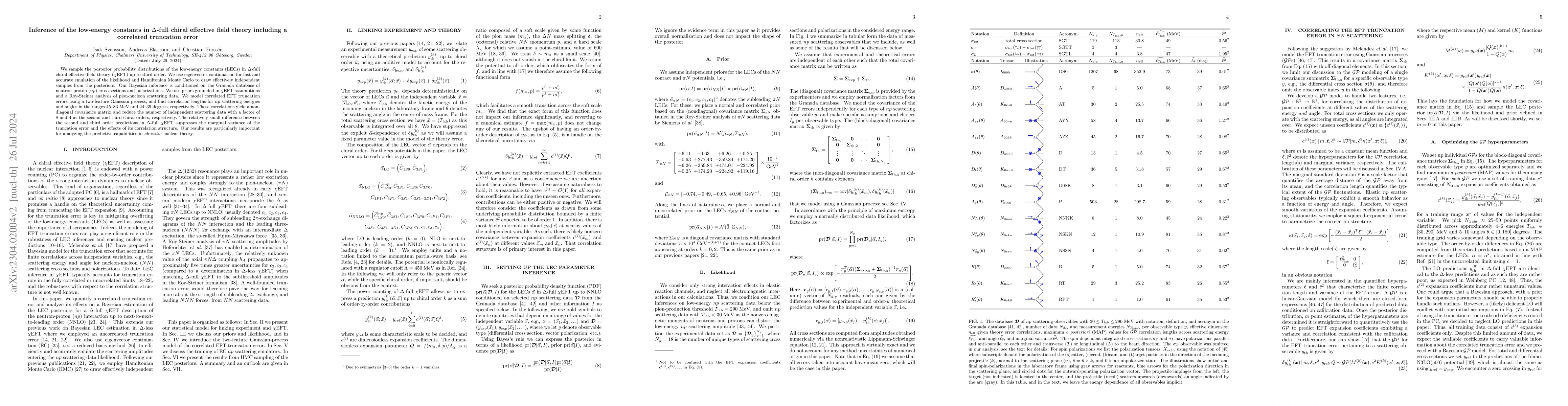 This paper presents a Bayesian inference method to determine low-energy constants in delta-full chiral effective field theory, incorporating a correlated truncation error model. The study finds that the correlation structure significantly reduces the effective number of independent scattering data, impacting the predictive power of the theory.