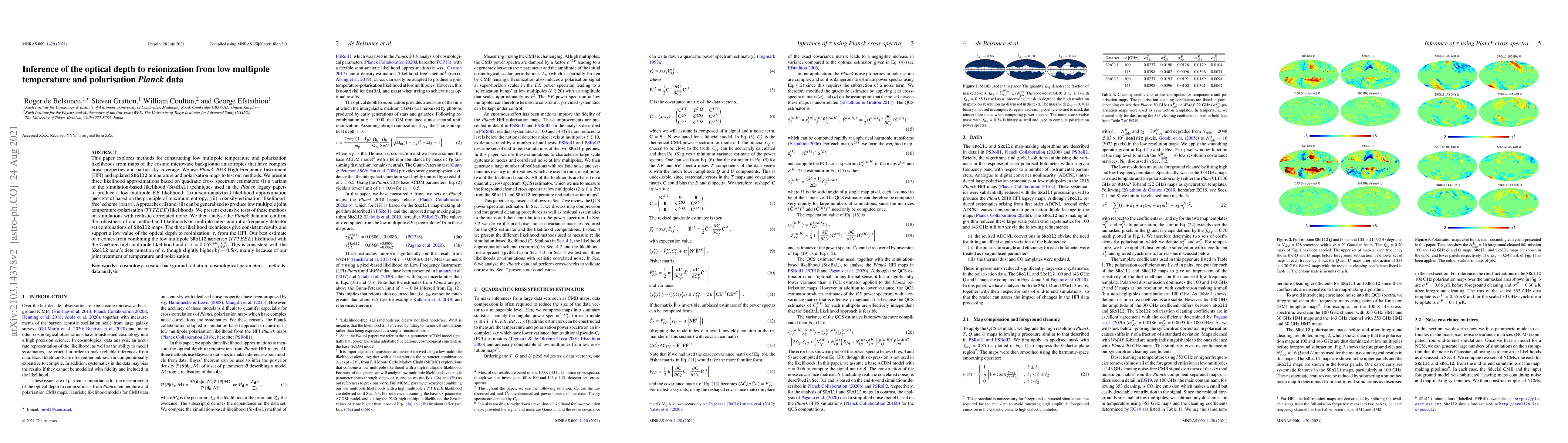 This paper develops methods for constructing low multipole likelihoods from Planck CMB data, testing three approaches: SimBaL, momento, and DELFI. The results support a low optical depth to reionization, tau = 0.0627±0.0058, consistent with the SRoll2 team's findings but slightly higher due to the joint treatment of temperature and polarisation.
