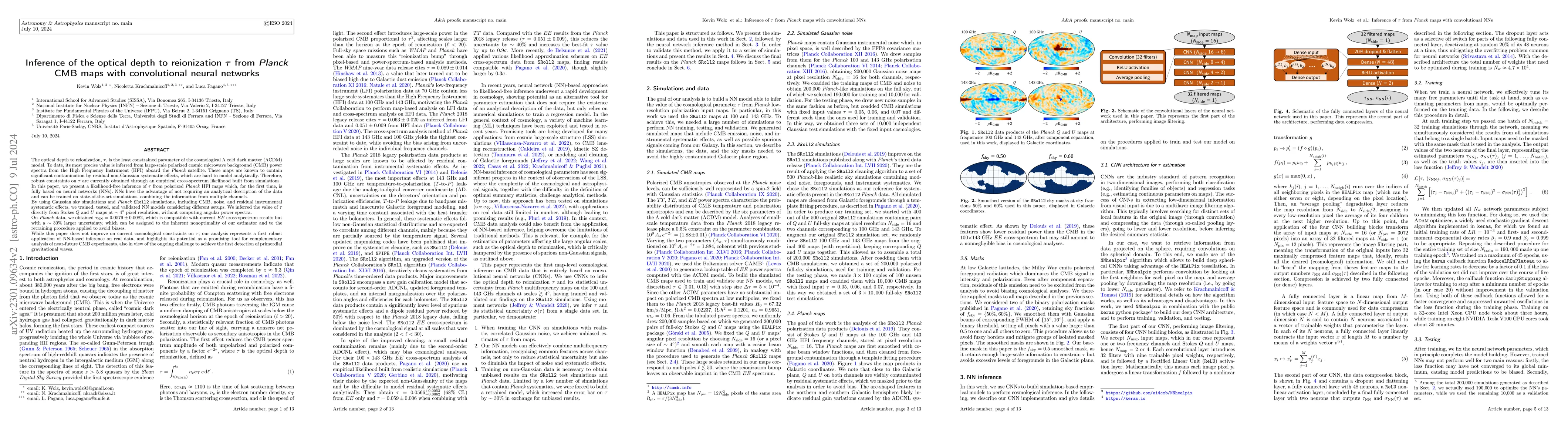 This paper uses convolutional neural networks (NNs) to infer the optical depth to reionization $\tau$ from $\textit{Planck}$ CMB maps, achieving a value of $\tau_{\rm NN}=0.0579\pm 0.0082$. While this method does not surpass current constraints, it demonstrates the potential of NN-based inference for future CMB experiments.