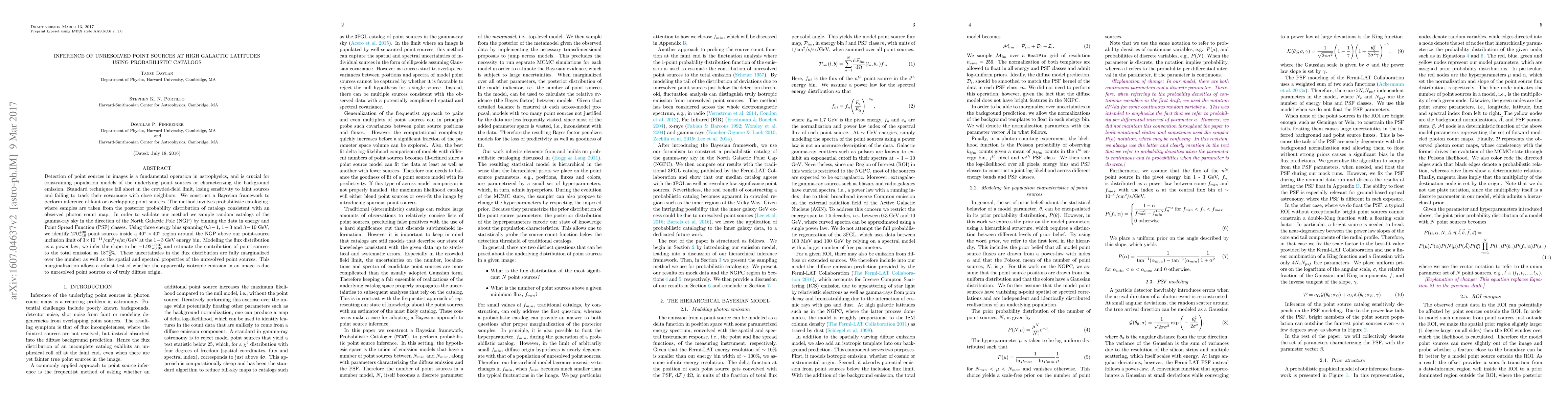 This paper develops a Bayesian framework for inferring unresolved point sources in high galactic latitude regions using probabilistic catalogs. The method identifies faint or overlapping sources by sampling from the posterior distribution of catalogs consistent with observed photon count maps, validated through gamma-ray sky data around the North Galactic Pole. The study estimates 270 point sources in a $40^\circ \times 40^\circ$ region, with a flux distribution slope of $-1.92$ and point sources contributing $18\%$ to the total emission.
