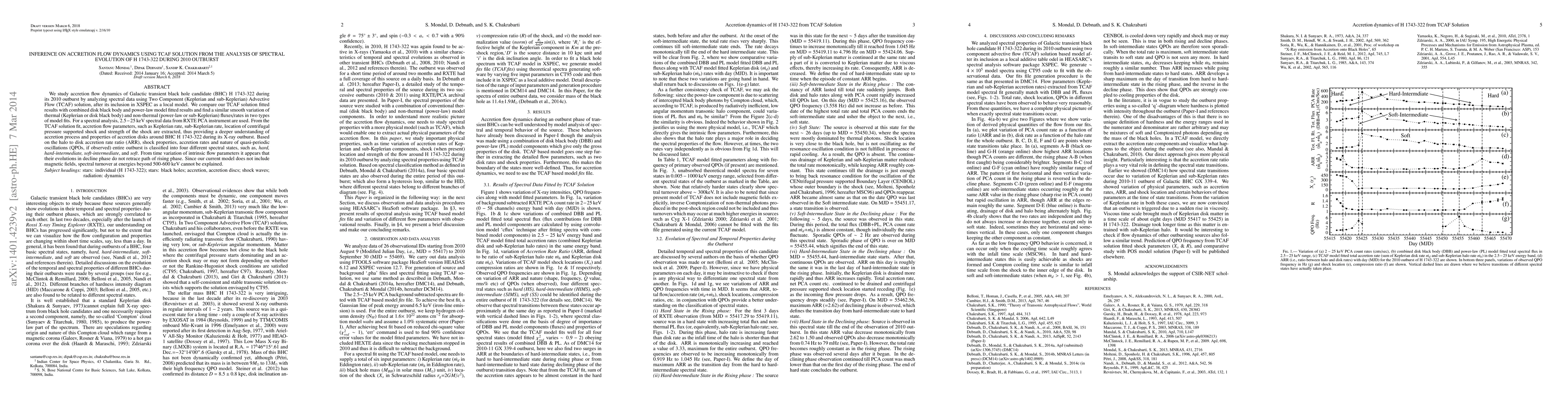 This study uses the TCAF (Two Component Advective Flow) solution to analyze spectral data from the 2010 outburst of the black hole candidate H 1743-322. Comparing TCAF results with traditional disk black body and power-law models, the research identifies four spectral states based on accretion rate ratios and shock properties. The methodology extracts accretion flow parameters like Keplerian and sub-Keplerian rates, shock location, and strength. The findings suggest unique evolution patterns of intrinsic flow parameters in the outburst's decline phase and highlight limitations due to the model's lack of magnetic field inclusion.
