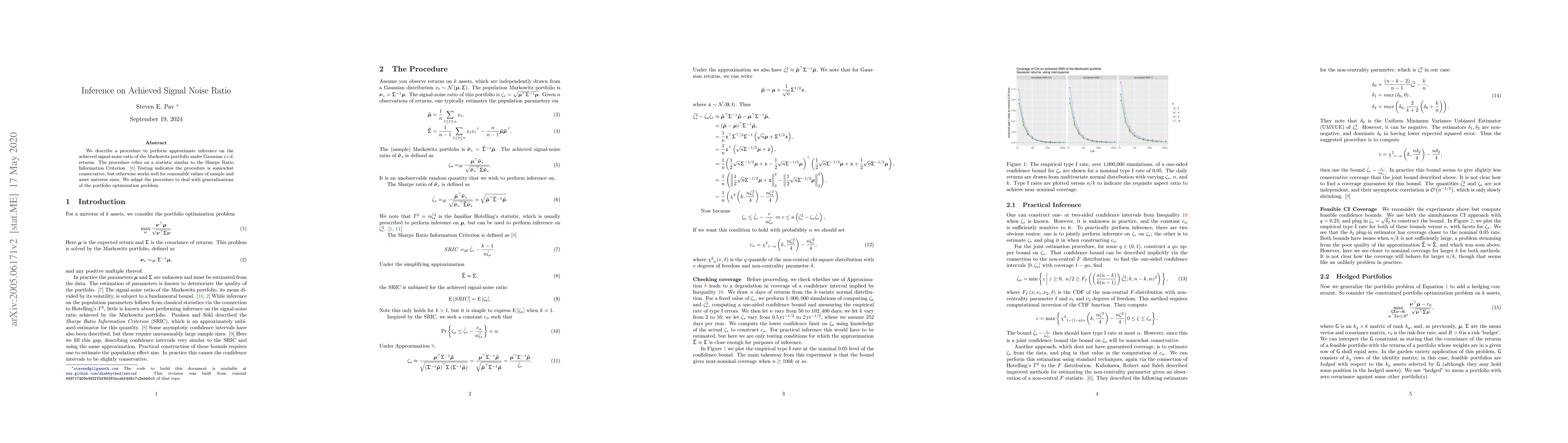 We describe a procedure to perform approximate inference on the achieved signal-noise ratio of the Markowitz Portfolio under Gaussian i.i.d. returns. The procedure relies on a statistic similar to the Sharpe Ratio Information Criterion. Testing indicates the procedure is somewhat conservative, but otherwise works well for reasonable values of sample and asset universe sizes. We adapt the procedure to deal with generalizations of the portfolio optimization problem.