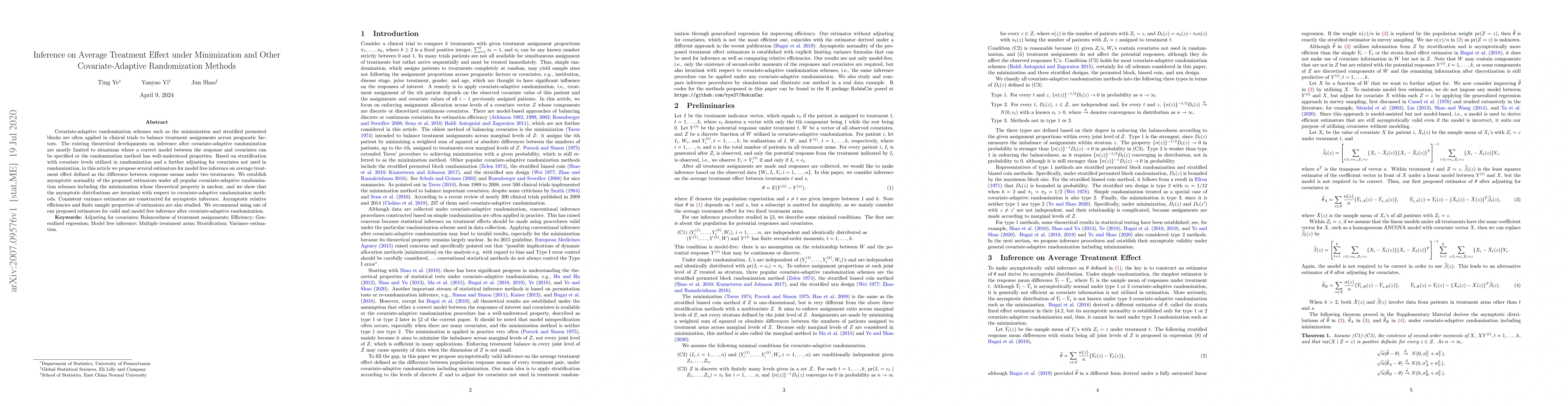 This paper proposes several model-free estimators for the average treatment effect in clinical trials using covariate-adaptive randomization methods like minimization. It establishes their asymptotic normality and recommends their use for valid inference, independent of the specific randomization method employed.