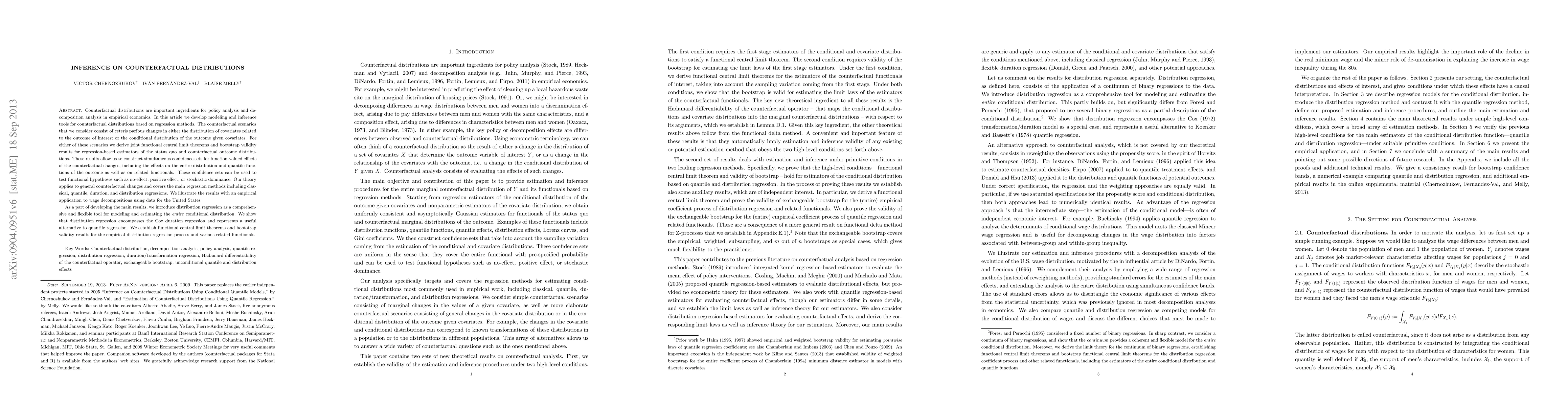 This research paper develops tools for analyzing counterfactual distributions in policy analysis, providing confidence sets for evaluating changes to covariate distributions or conditional outcome distributions.