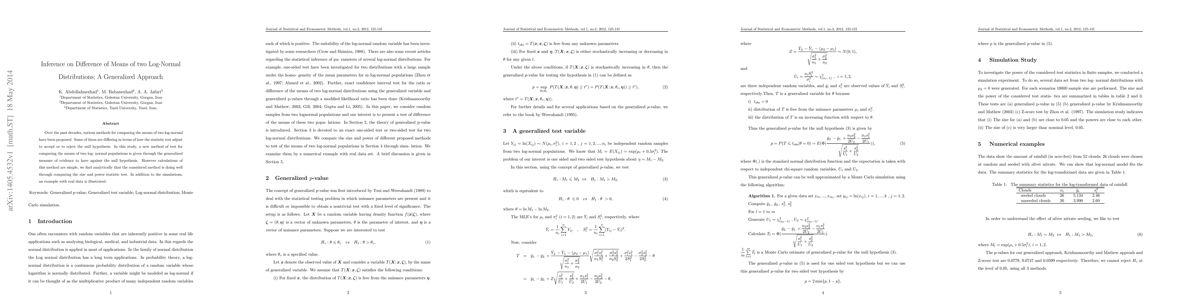 A new method for comparing the means of two log-normal distributions is proposed, offering a simple yet powerful approach with good size and power statistics.