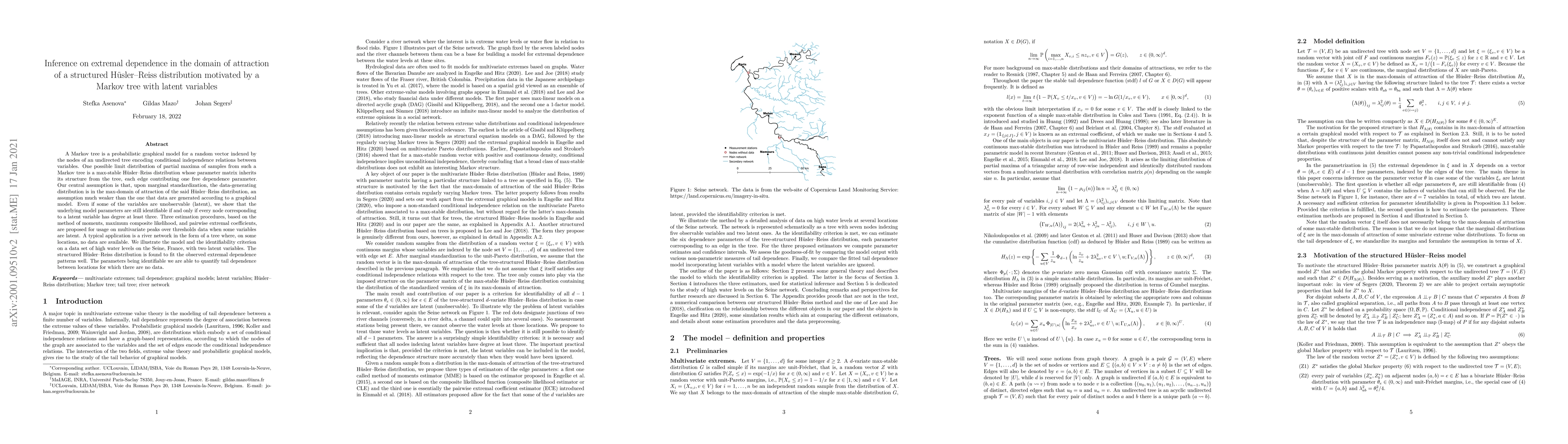 This paper proposes inference methods for extremal dependence in the domain of attraction of a structured H\"usler-Reiss distribution, motivated by Markov trees with latent variables. It demonstrates identifiability of model parameters under certain conditions and presents three estimation procedures for multivariate peaks over thresholds data.