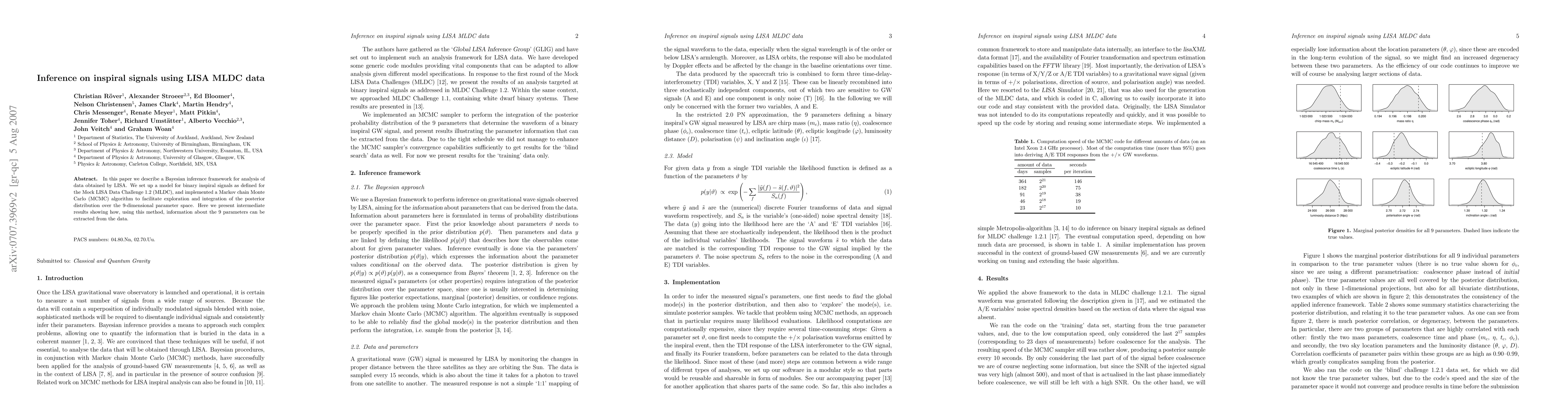 A Bayesian inference framework was developed for analysis of GW signals as measured by LISA.