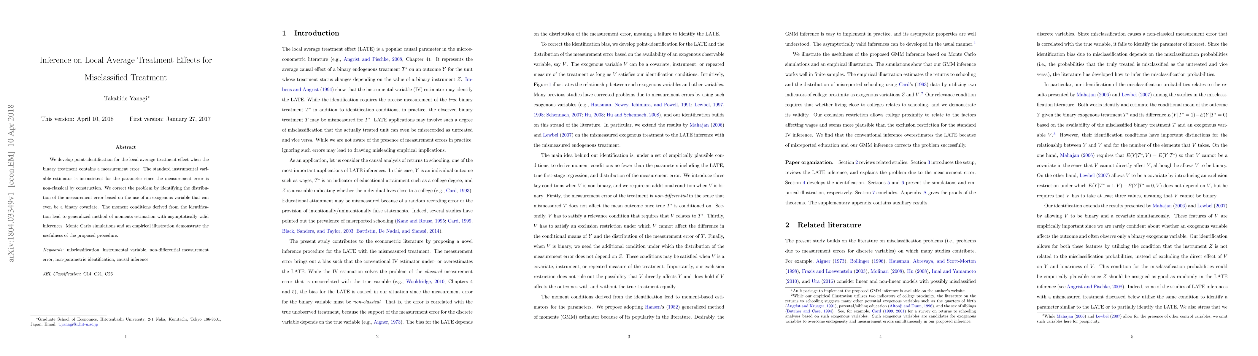 Researchers developed a method to estimate local average treatment effects when there is measurement error in the treatment, providing an alternative approach for policymakers and researchers. Their findings suggest that their method can provide accurate estimates with asymptotically valid inferences.