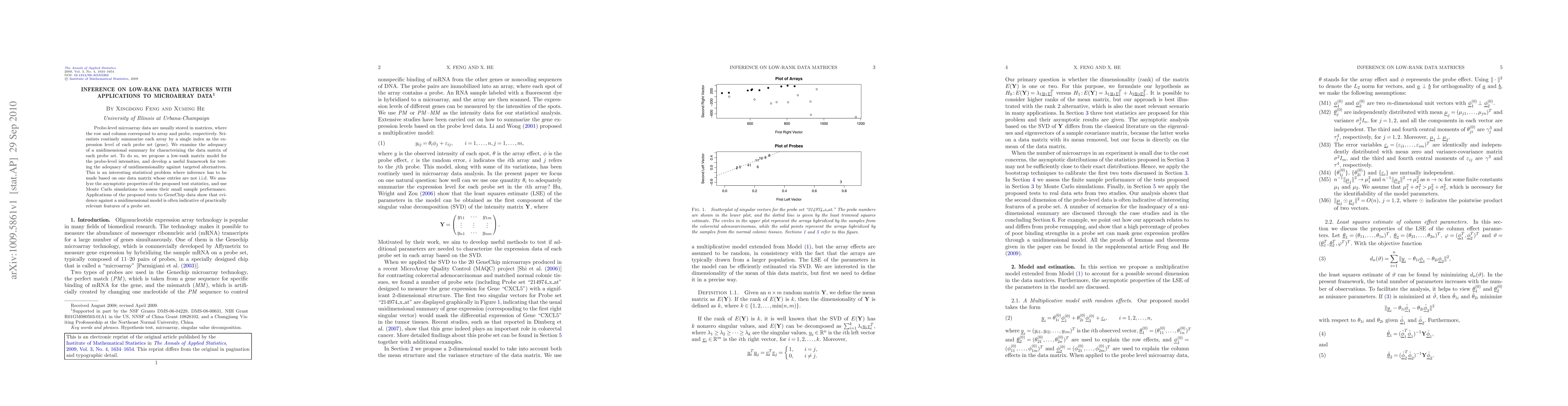 Probe-level microarray data are usually stored in matrices, where the row and column correspond to array and probe, respectively. Scientists routinely summarize each array by a single index as the expression level of each probe set (gene). We examine the adequacy of a unidimensional summary for characterizing the data matrix of each probe set. To do so, we propose a low-rank matrix model for the probe-level intensities, and develop a useful framework for testing the adequacy of unidimensionality against targeted alternatives. This is an interesting statistical problem where inference has to be made based on one data matrix whose entries are not i.i.d. We analyze the asymptotic properties of the proposed test statistics, and use Monte Carlo simulations to assess their small sample performance. Applications of the proposed tests to GeneChip data show that evidence against a unidimensional model is often indicative of practically relevant features of a probe set.